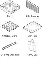 ✅ 多機能構成 – 収納バッグ、炭台、スタンド脚、折りたたみ設計、グリルブリッジ付き。